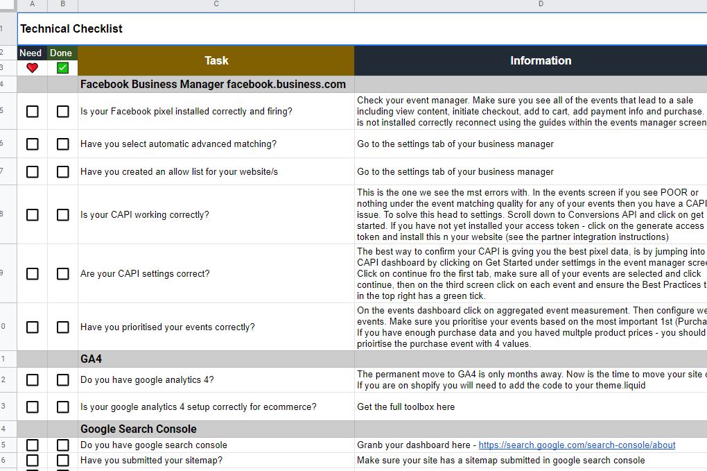 Technical Checklist Covers everything you need for successful advertising, across your website, social and advertising channels