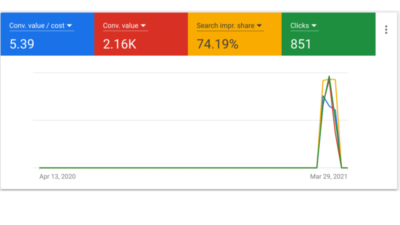 On the ads we were able to track a  17% conversion rate ( the industry average is just 2%) which was immediately a surprise to the client. Out of every 851 clicks, the company generate 882 sales – every click resulted in at least one